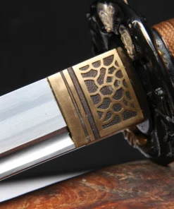 - Tsuba (hand-guard), Fuchi (collar), Kashira (pommel-cap) material: Brass, plated in genuine gold & silver.