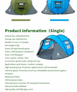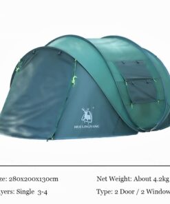 To further secure the tent, ropes and tent stakes come included, which will ratchet down the camping shelter for heavy downpours and stronger winds. But there’s never a need to handle any poles, as they’re built into the tent’s structure.