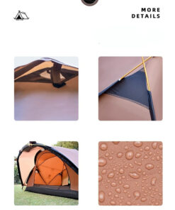 - Tent flysheet material: 210T anti-tear polyester – tape seam sealed (PU2500MM waterproof index).