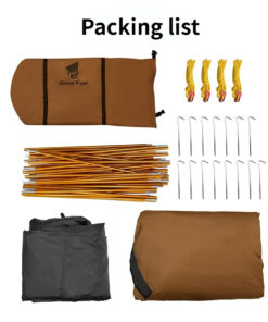 - Included: 1x inner tent; 1x fly sheet; aluminum tent stakes; folding aluminum poles; tent ropes; 1x tent carry bag.