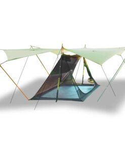 Weighing only 1.4kg and packing into a very compact size, this two man tent truly is ultralight. These weight savings are mostly because of its poleless design, with tent poles most commonly substituted with trekking poles or even natural sticks.