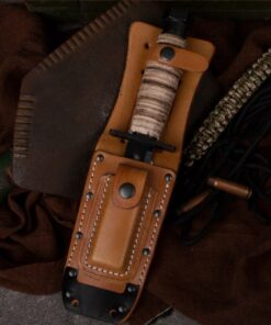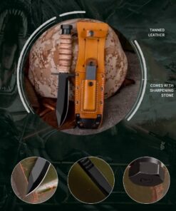 - Knife sheath: Genuine cowhide leather + sharpening stone.