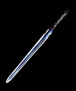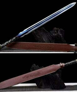 Simple and solid, this beautiful sword is hand forged from high Manganese steel (also known as spring steel). The entire weapon is a single peice of steel, with no attachments and thus weak points of the construct. The twisted steel handle is both simple and effective, and double fullers on both sides of the blade act to reduce overall blade weight and provide efficient thrust penetrations.