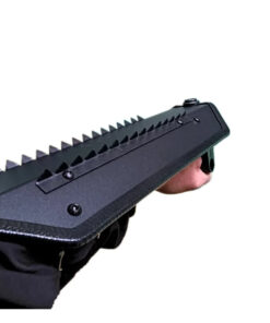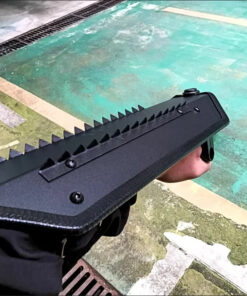 - Serrated spikes and glass-breaker can act as auxiliary weapons.