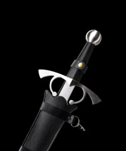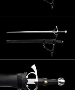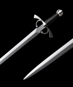 This Knights sword is designed to be used with a single hand, and the double edged sword blade is perfectly balanced, poised not only as a formidable thrusting weapon, but equally effective for cutting attacks.