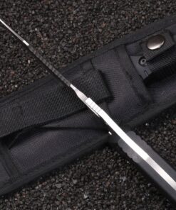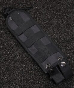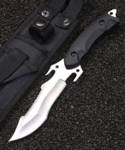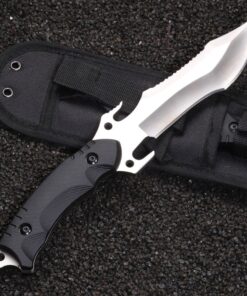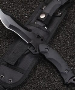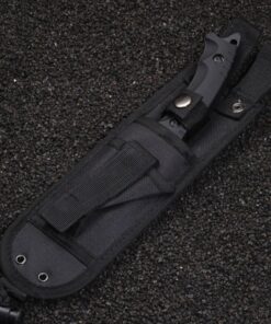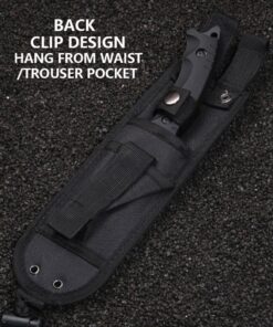 The construct is a full tang modern 7cr13mov blade, which has a high carbon content alloyed with stainless steel & other metals, creating a hard & razor sharp edge which is resilient against both blade fracture & edge chipping. A tough K10 handle is bolted to the tang, and the knife is housed in a simple nylon sheath – to be worn on the hip.
