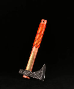 The handle is a solid piece of beautiful Maple tree wood. This material is very strong, naturally resilient and shock absorbing, making a perfect tomahawk handle.