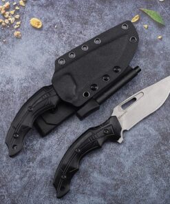 - Knife sheath: Kydex material sheath + incorporated flint fire starter.