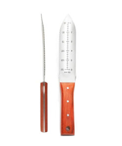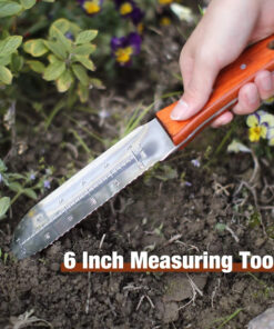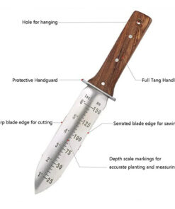 - Thin bladed gardening trowel – effective & deep earth penetration, while minimizing surrounding area disturbance.