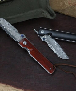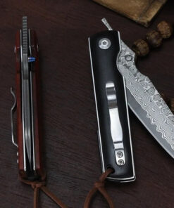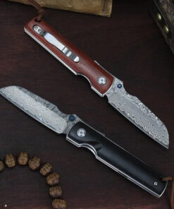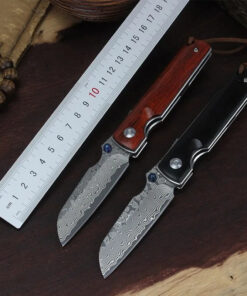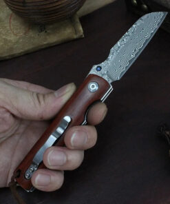 - Damascus pocket knife – unique & practical outdoor knife with excellent utility for camping, carving & civilian use.