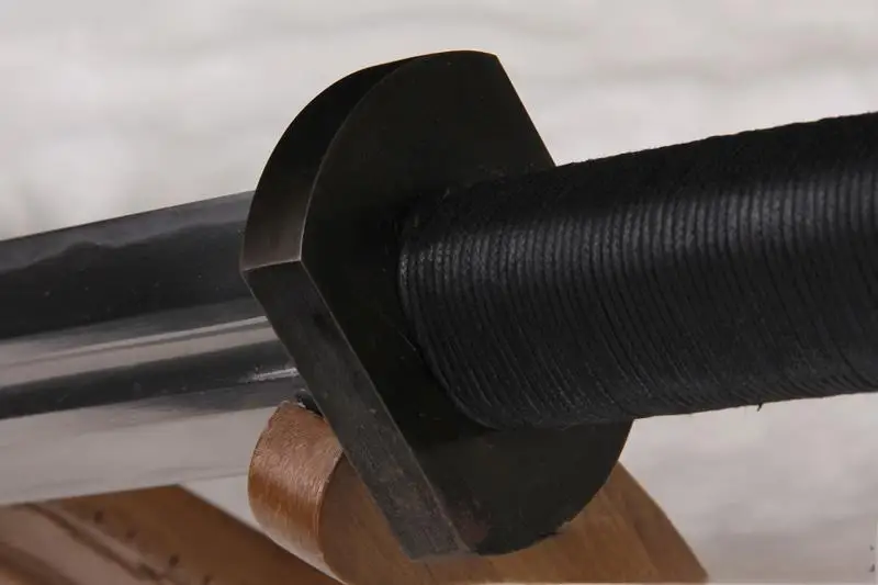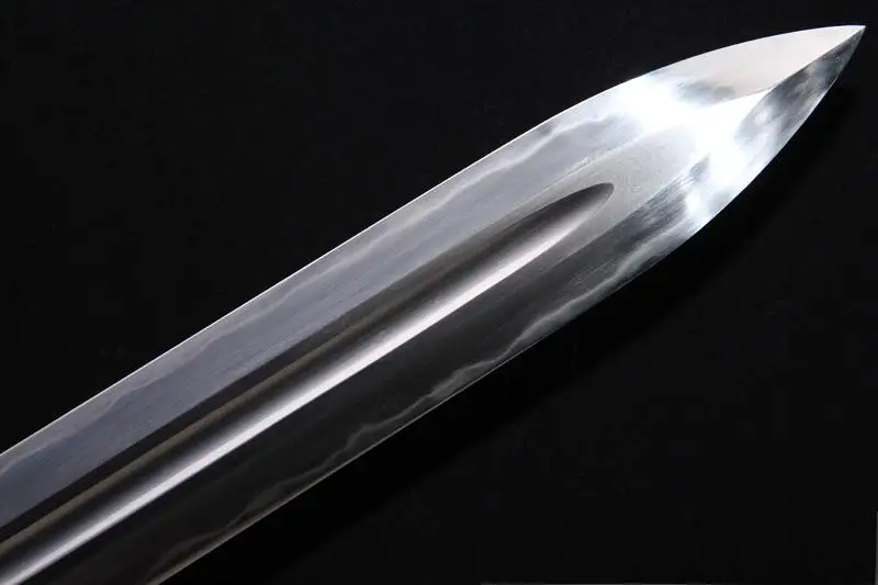 Equipped with a T10 steel sword blade, which is a modern, highly refined, iron base-steel alloyed with a high on average 1.0% carbon content, along with small amounts of tungsten, manganese and silicon.