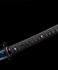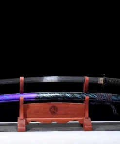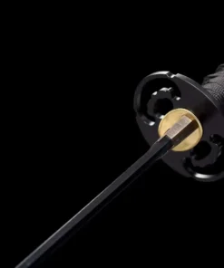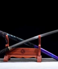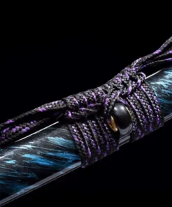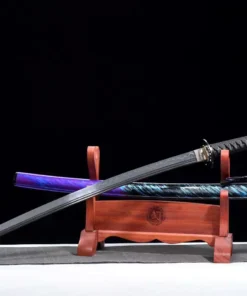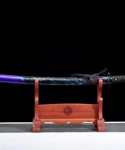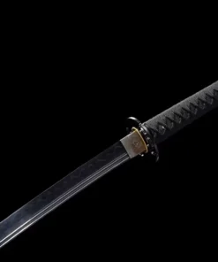 Equipped with a T10 steel sword blade, which is a modern, highly refined, iron base-steel alloyed with a high on average 1.0% carbon content, along with small amounts of tungsten, manganese and silicon.