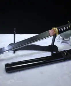 - Saya (scabbard) material: Lacquered hardwood, wrapped with a quality-cord Sageo (scabbard-wrap).