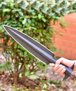 Also useful for survival situations, the tip of the spear can be used as a basic shovel for digging and of course by holding onto the handle, or even attaching a small wooden handle, these spear tips may also be used as a survival knife or jungle machete.