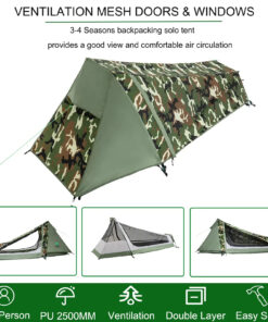 - Rated 1 person camping tent – great for solo backpacking, bicycle touring, trekking and more.