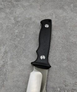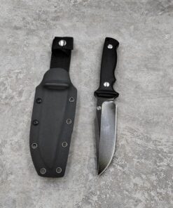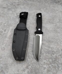 A tough G10 handle is bolted to the tang, and the knife is housed within a Kydex sheath, which is designed to last a lifetime.