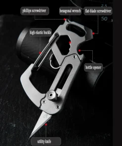 - 6 in 1 carabiner tool – packed with versatile tools.