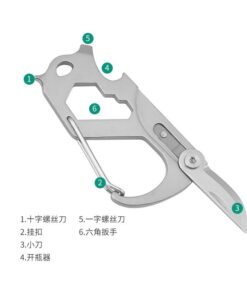 - 6 in 1 carabiner multi tool – packed with versatile tools.