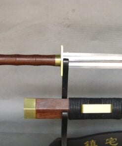- Straight sword blade – versatile cutting and thrusting Jian weapon.