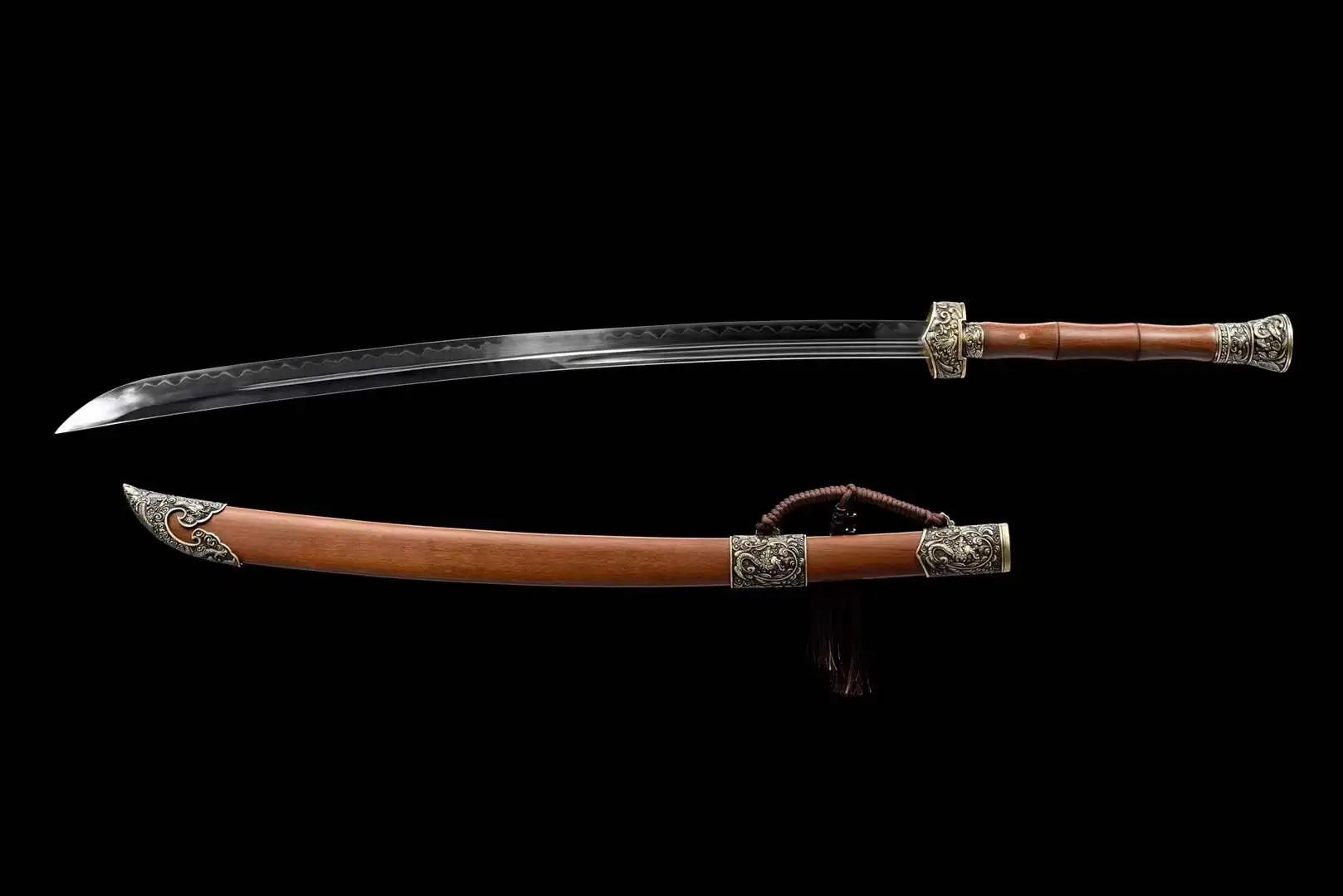 Completed with a solid Suanzhi hardwood scabbard, along with premium brass fittings, and a matching Suanzhi hardwood handle, forming a traditional, practical and effective hand-grip.
