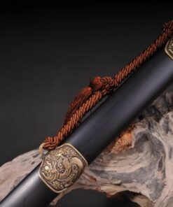 Completed with an exotic Ebony hardwood scabbard, premium brass fittings – many of which are illustrated with the Chinese dragon, and a matching Ebony hardwood, wrapped with quality-cord handle, forming a traditional, practical and effective hand-grip.