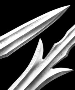Constructed with a razor sharp and naturally resilient Damascus steel blade, the edges are assured to cut like a knife through butter and remain intact even with exposure to the most violent battle stresses.