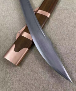 Completed with an aged-Sandalwood scabbard, premium copper fittings – many of which are hand carved creations, and finally a practical Sandalwood, bound with quality-cord handle, this Chinese curved sword is finished in full traditional fashion.