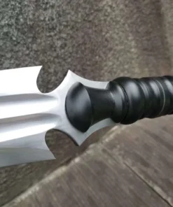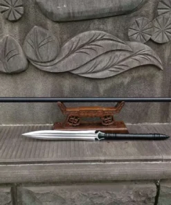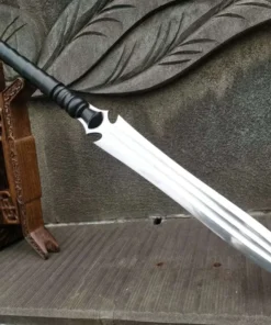 Very high quality and battle functional, the tactical short sword construct is a high Manganese steel (Spring Steel) double-edged blade with a strong steel tube handle. To form the battle spear, the end-cap from the sword handle is simply un-screwed and replaced with the long spear handle, which is also made from tube steel.