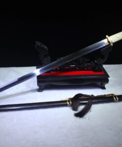 Equipped with a T10 steel sword blade, which is a modern, highly refined, iron base-steel alloyed with a high on average 1.0% carbon content, along with small amounts of tungsten, manganese and silicon.