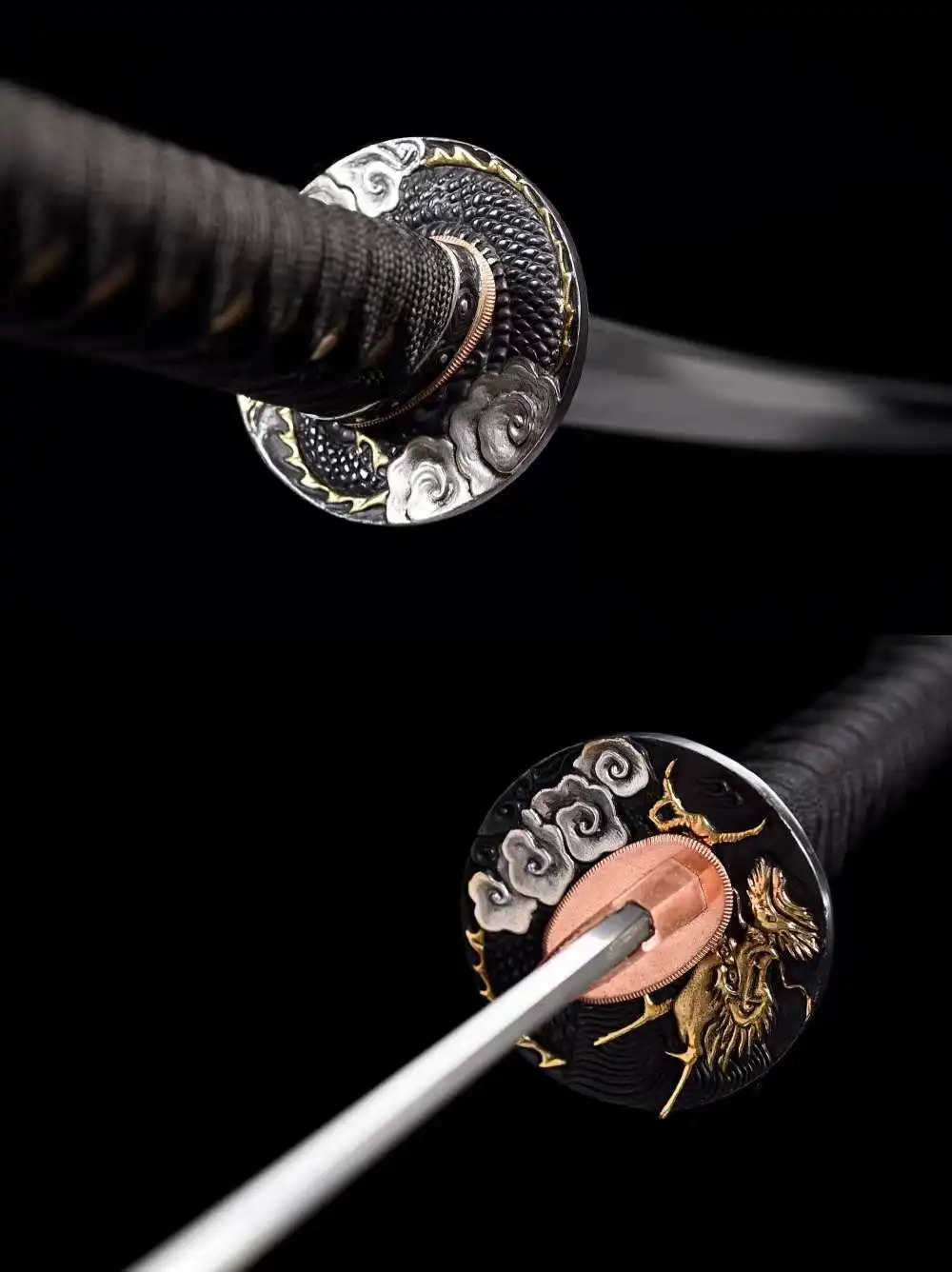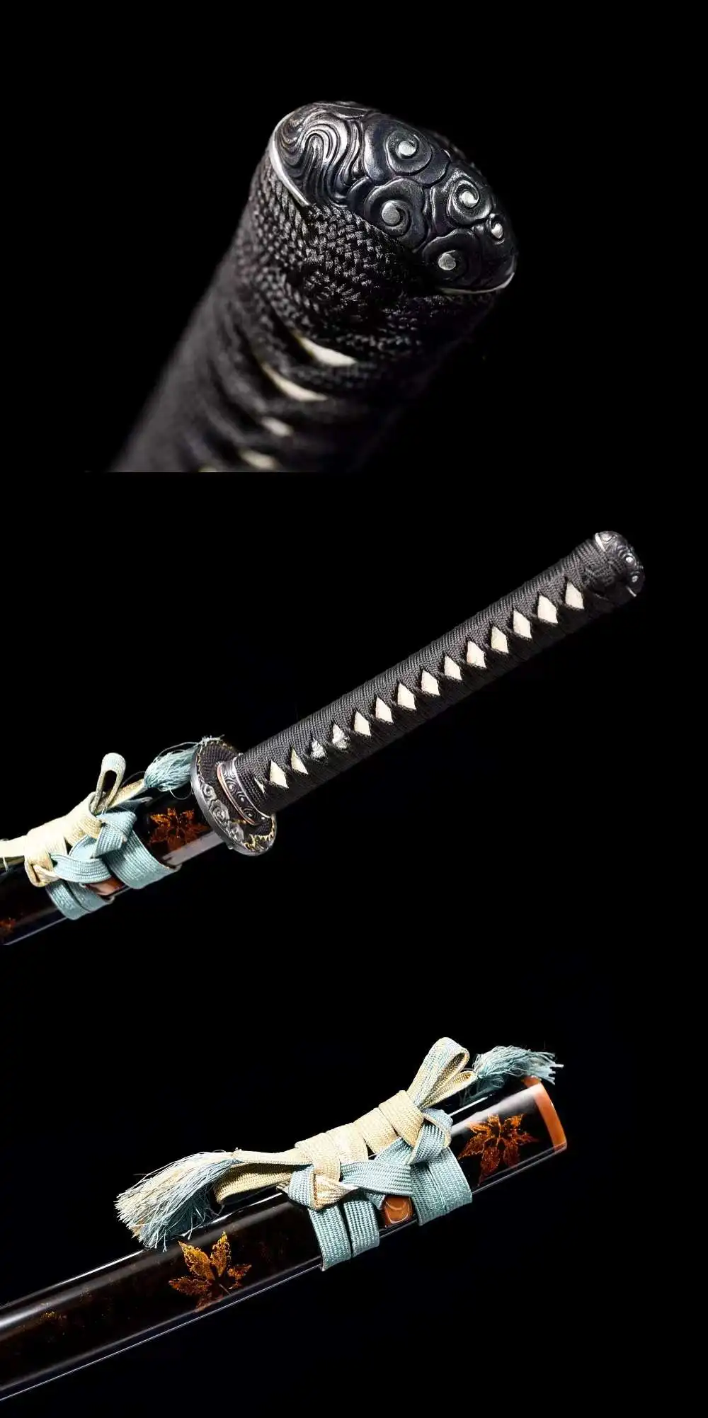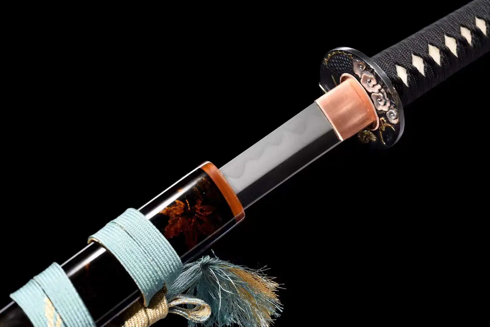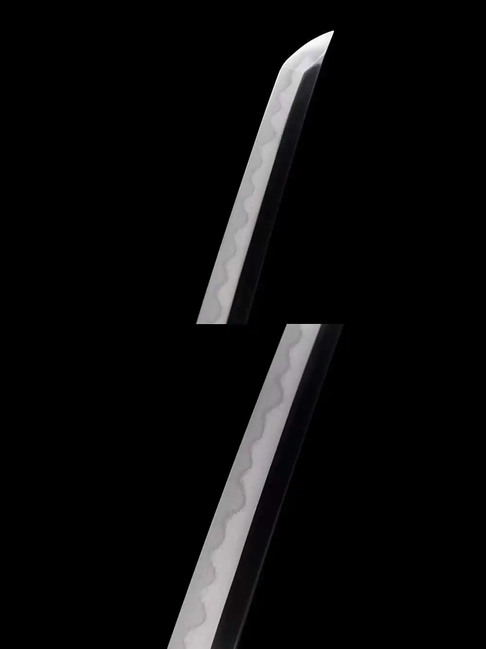 - Tempering: Genuine clay tempered Katana blade, visible Hamon.
