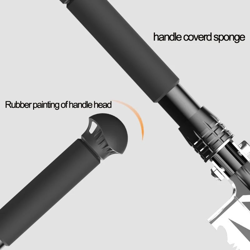 The handle construct is a lightweight aluminum alloy with nearly the same strength as steel and with the additional benefit of excellent corrosion resistance. Firmly attached to the outside of the tube handle is a non-slip rubber grip, which ensures a strong hand-grip even with a sweaty or wet hand.