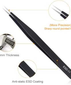 These anti static tweezers have a high ESD (electrostatic discharge) performance with ESD coated tips, and are coated with anti static paint to minimise the risks of static discharge.
