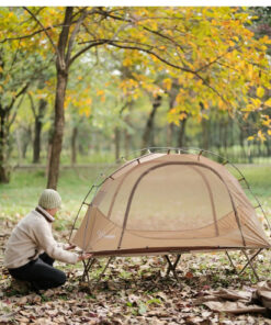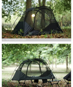Sleeping a single person comfortably on the included stretcher bed, high above sticks, stones and any groundwater risks, users are sure to get a satisfactory night’s sleep.