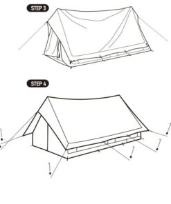 - Classic A shape ridge tent – high angle surface area to deflect wind and run off water.