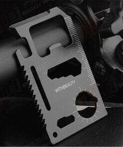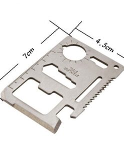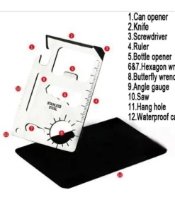Incorporated into the multifunction tool are the following: Knife edge; saw blade can-opener; screwdriver; measurement ruler; bottle-opener; directional aid; 2 position hex-wrench; 4 position hex-wrench; butterfly screw wrench; key chain hole.