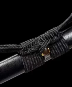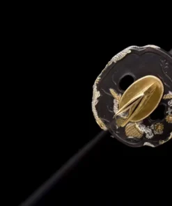 The black lacquered hardwood scabbard, along with the solid brass sword fittings – many of which are plated with real gold & silver, complement the black Katana handle, forming an overall dark sword color scheme. And the hardwood, wrapped with real stingray-skin & quality cord form a traditional, practical and effective Japanese Samurai hand-grip.