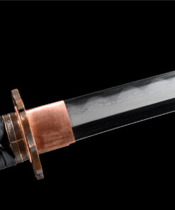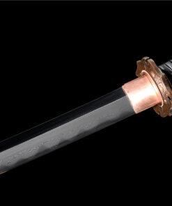 Completed with a lacquered hardwood & real buffalo horn insert scabbard, along with pure copper sword fittings – with many decorations plated with real gold, and a hardwood, wrapped with genuine stingray-skin & hog-skin leather handle, forming a traditional, practical and effective Japanese Samurai hand-grip.