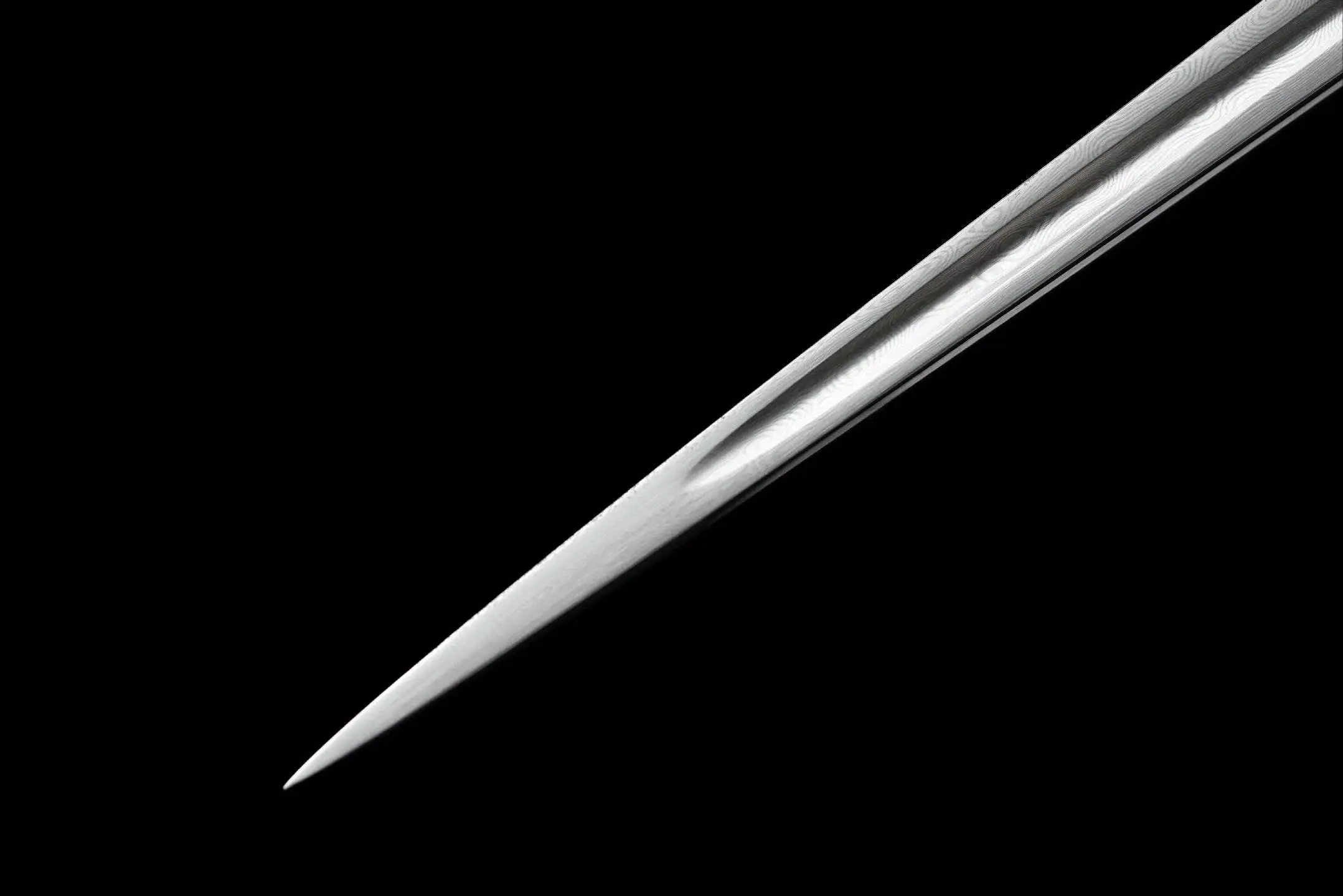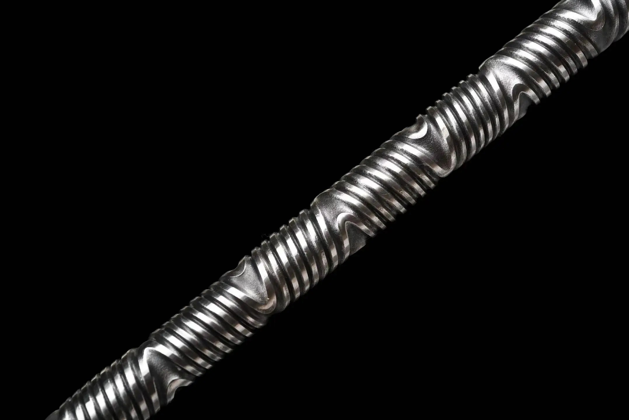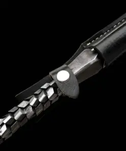 Equipped with a folded steel blade, which is a hammer-welded mixture of 1095 & 1060 high carbon steel, manganese spring steel, 1045 soft steel and many more smaller portions of other steels. This mixture is then folded multiple times to remove impurities, creating many hundreds of individual steel layers, finally producing arguably the best blade-making steel available.