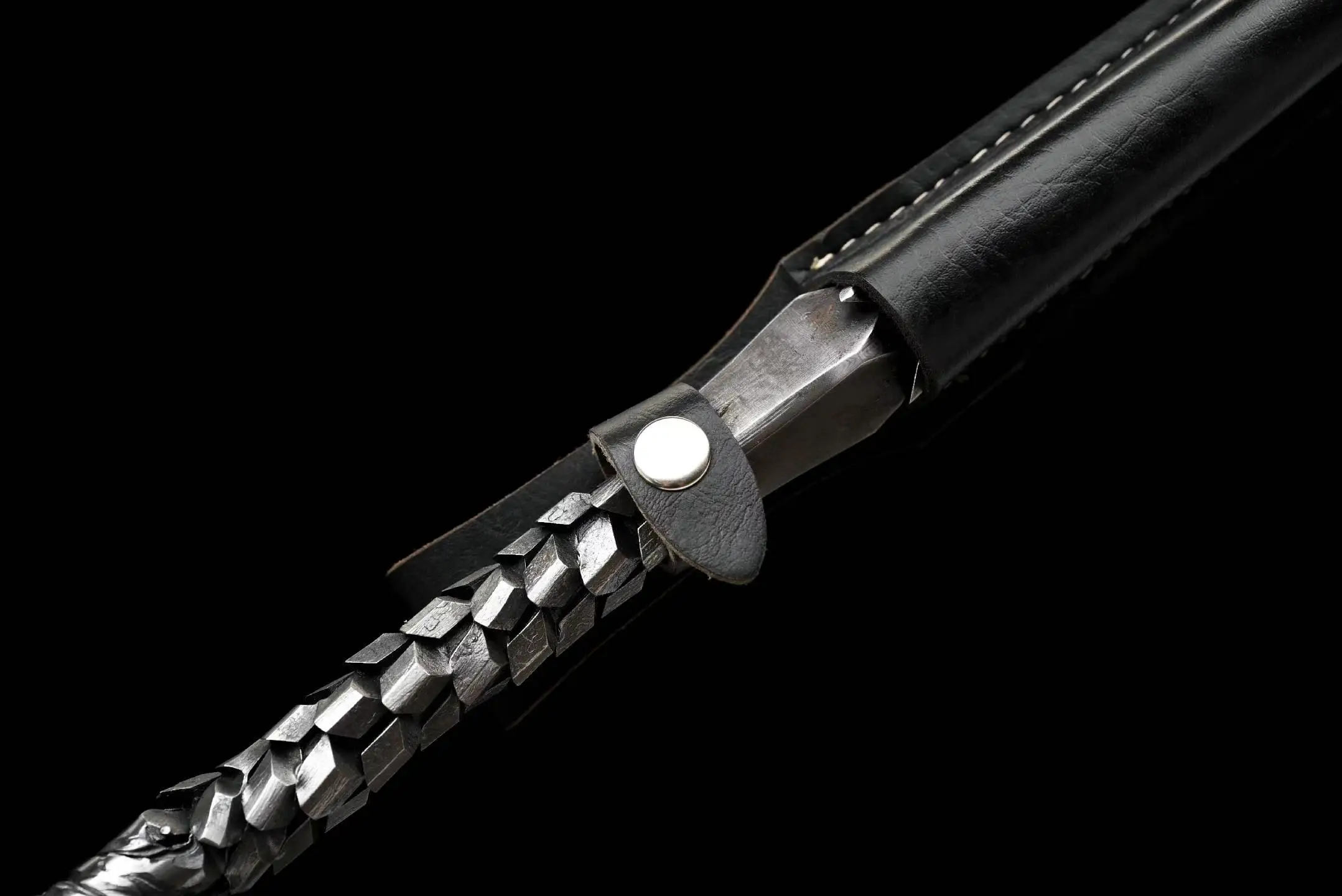 The handle is forge-integrated with the spear’s head, so there’s nothing to break-off this very strong polearm weapon. It’s absolutely a formidable war spear, and a unique, highly collectable piece of custom-made battle-ready art.