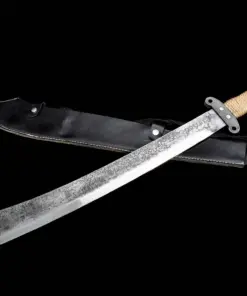 It’s a high carbon steel, well known for its almost perfect balance of good blade strength, hardness, toughness, edge-holding capacity, as well as renowned blade elasticity and excellent resilience, with very similar characteristics to a 1060 carbon steel sword blade. High Manganese steel is without a doubt, one of the most versatile steels available, and arguably the best blade-making steel for a true combat sword.