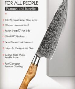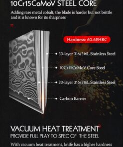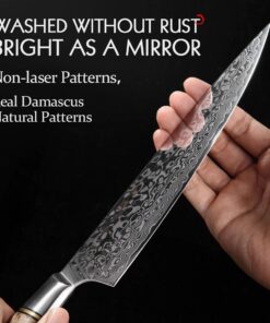 Damascus steel blades are reputed to be tough, resistant to shattering and are capable of being honed to a very sharp and resilient edge. With this world famous steel composition combined with the 10Cr15CoMoV stainless steel inner core makes these Damascus steel knives not only razor sharp, but also extremely resistant to rusting.