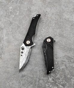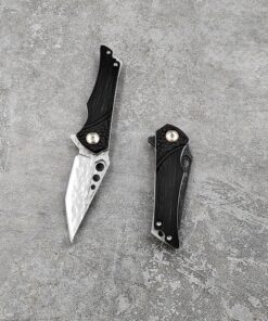 - Layered Damascus steel + VG10 steel core blade – very sharp pocket knife with a naturally resilient blade & edge.