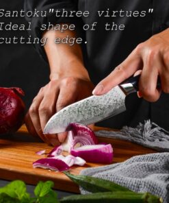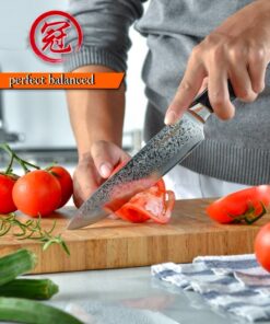 This Damascus kitchen knife set is perfect for constant working use. They hold a sharp edge for longer and will remain in optimal condition, even with constant exposure to water.