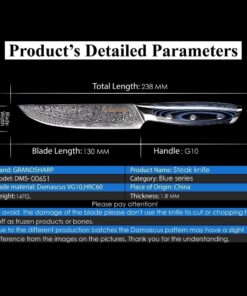 Blade Material: 67 layered – Pattern-welded Damascus Steel with 7CR17 stainless steel core.