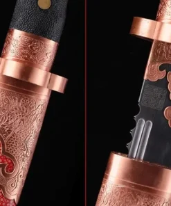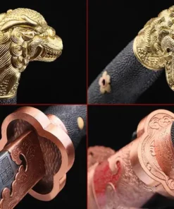 - Sword & scabbard fittings material: Brass and pure copper, hand-carved.