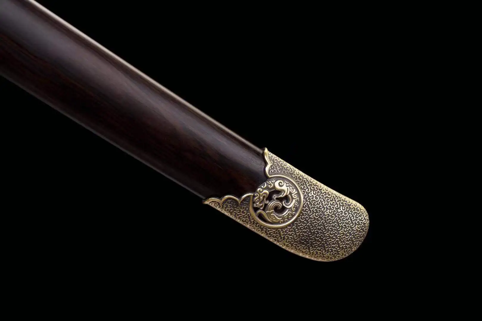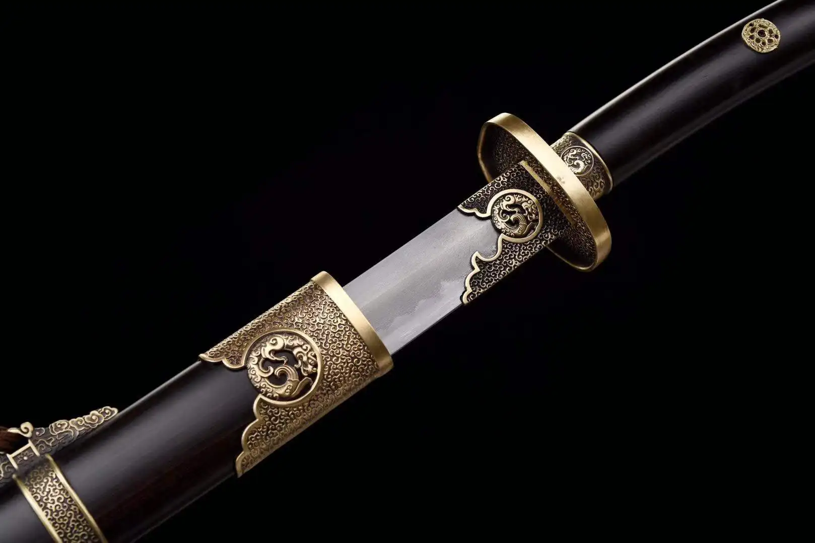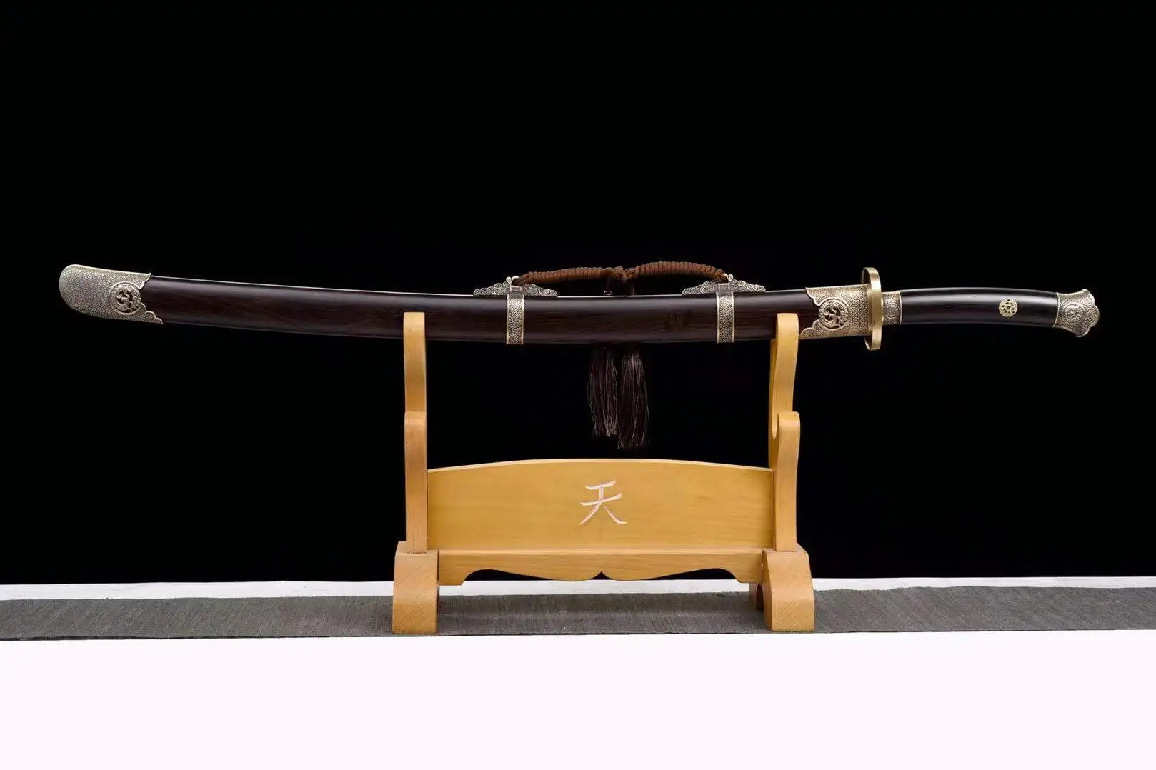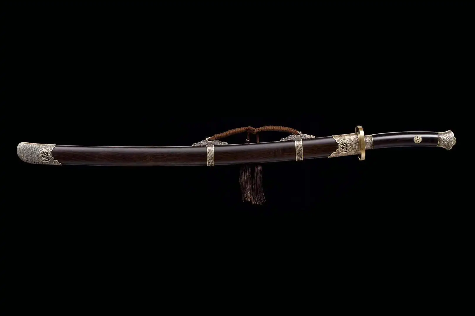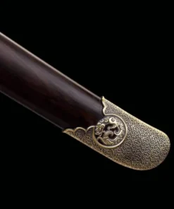 Completed with a durable Ebony hardwood scabbard, solid brass sword fittings – all of which are intricate artwork illustrations, and a matching Ebony hardwood hardwood handle, forming a traditional, practical and effective hand-grip.