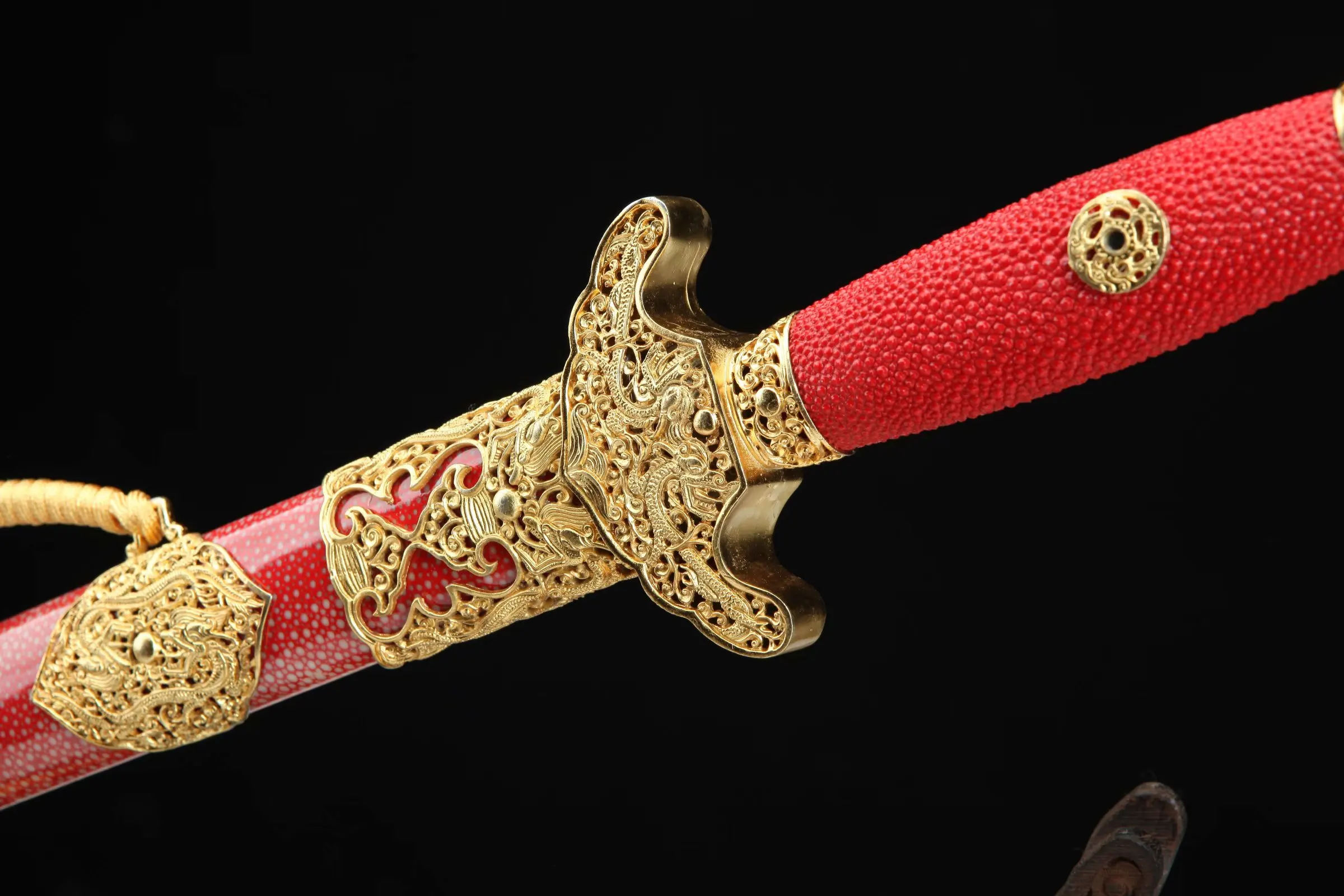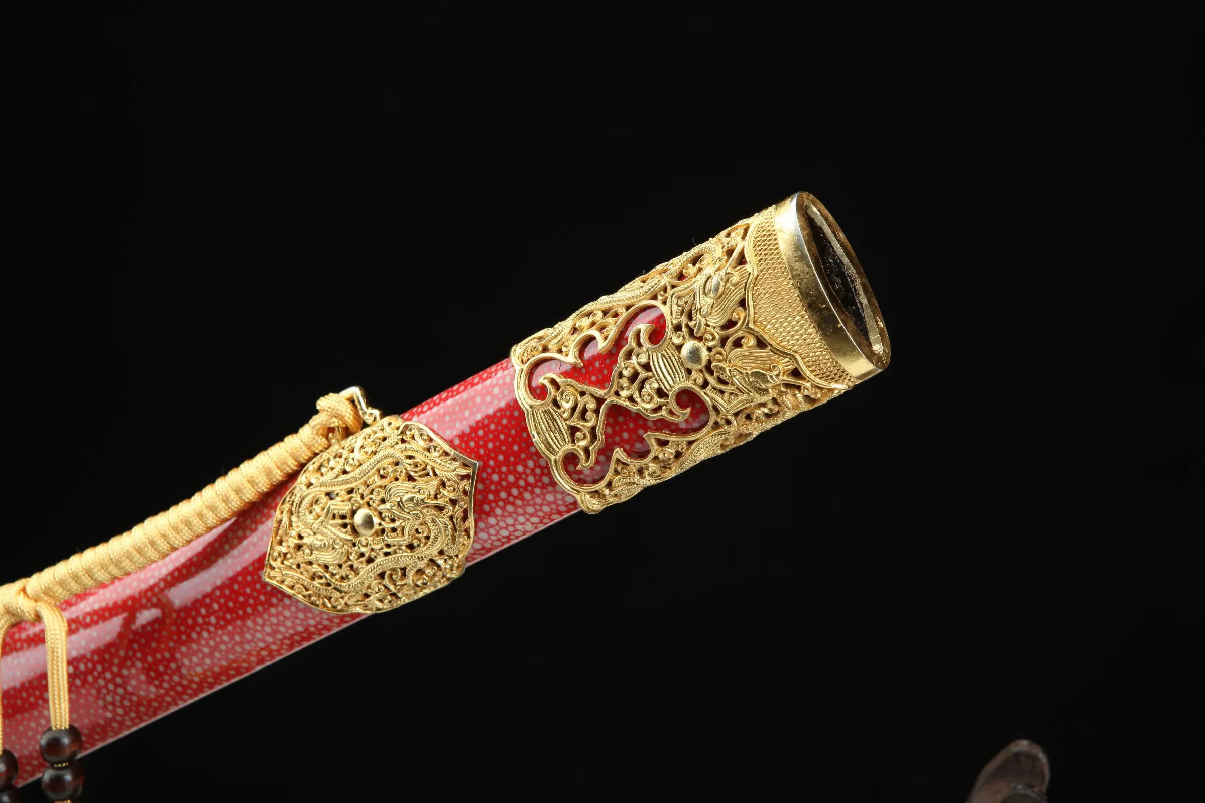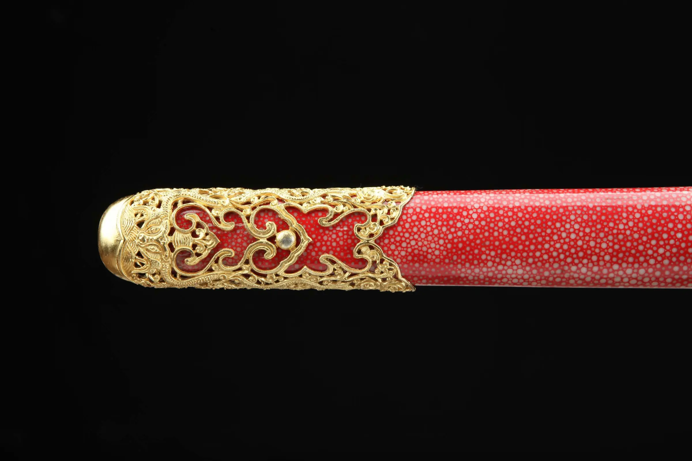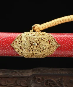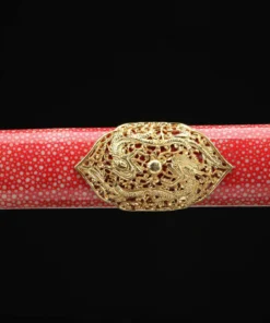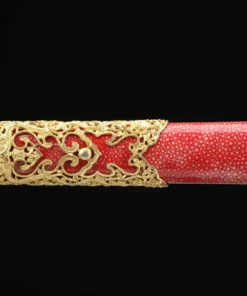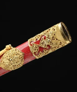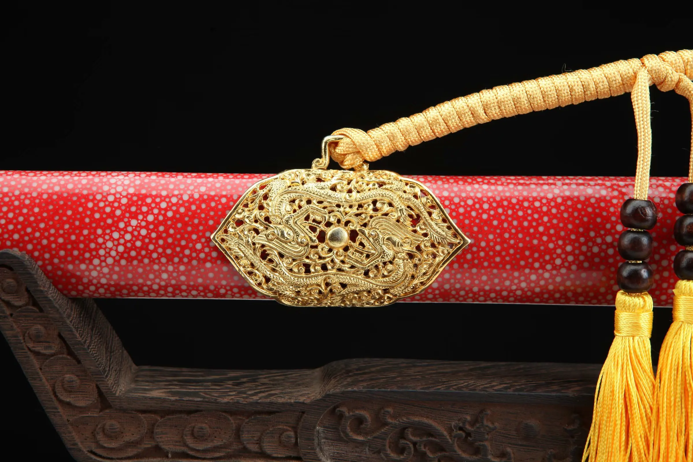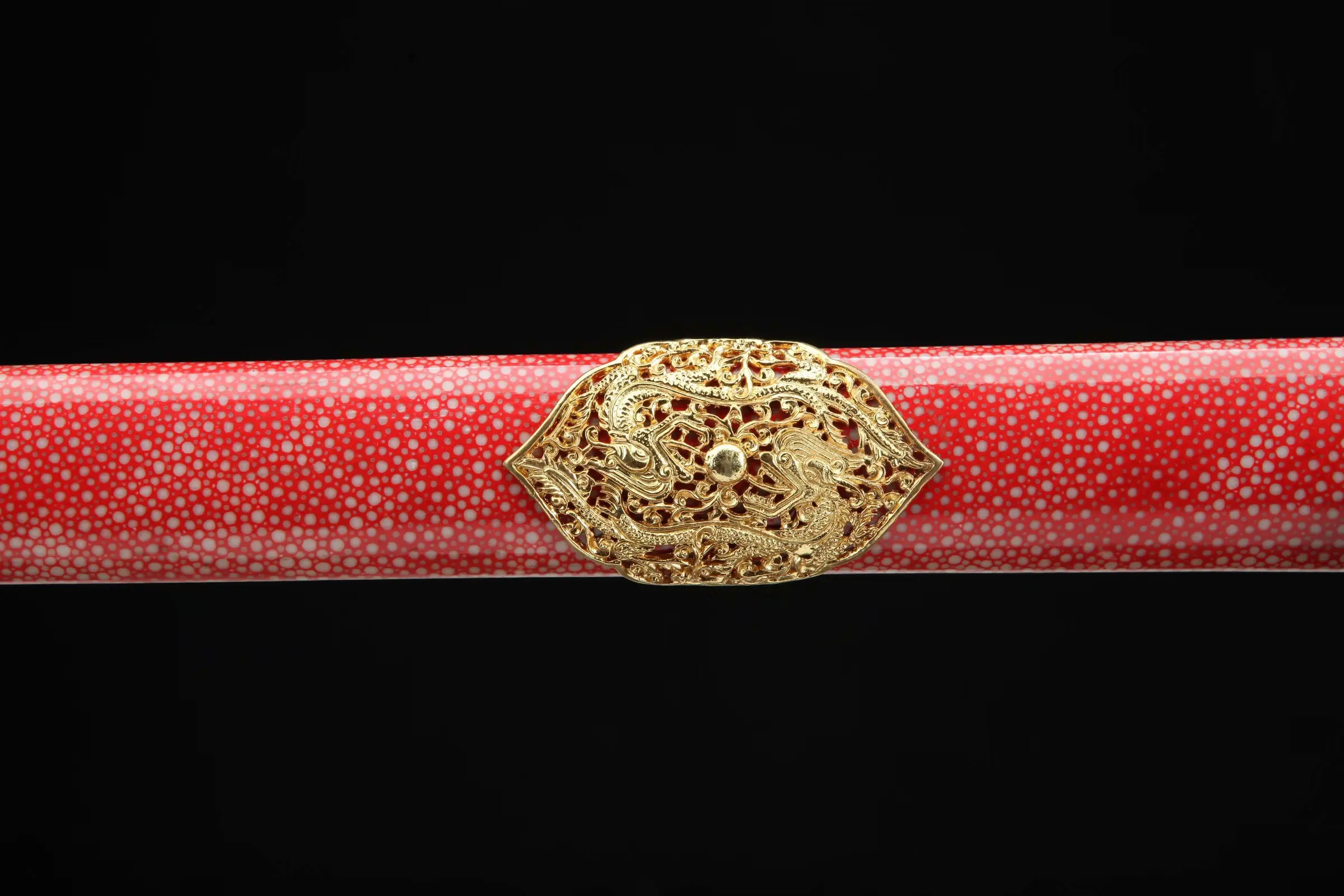 - Sword & scabbard fittings material: Hand-carved, pure-copper fittings, plated with genuine 24K gold.