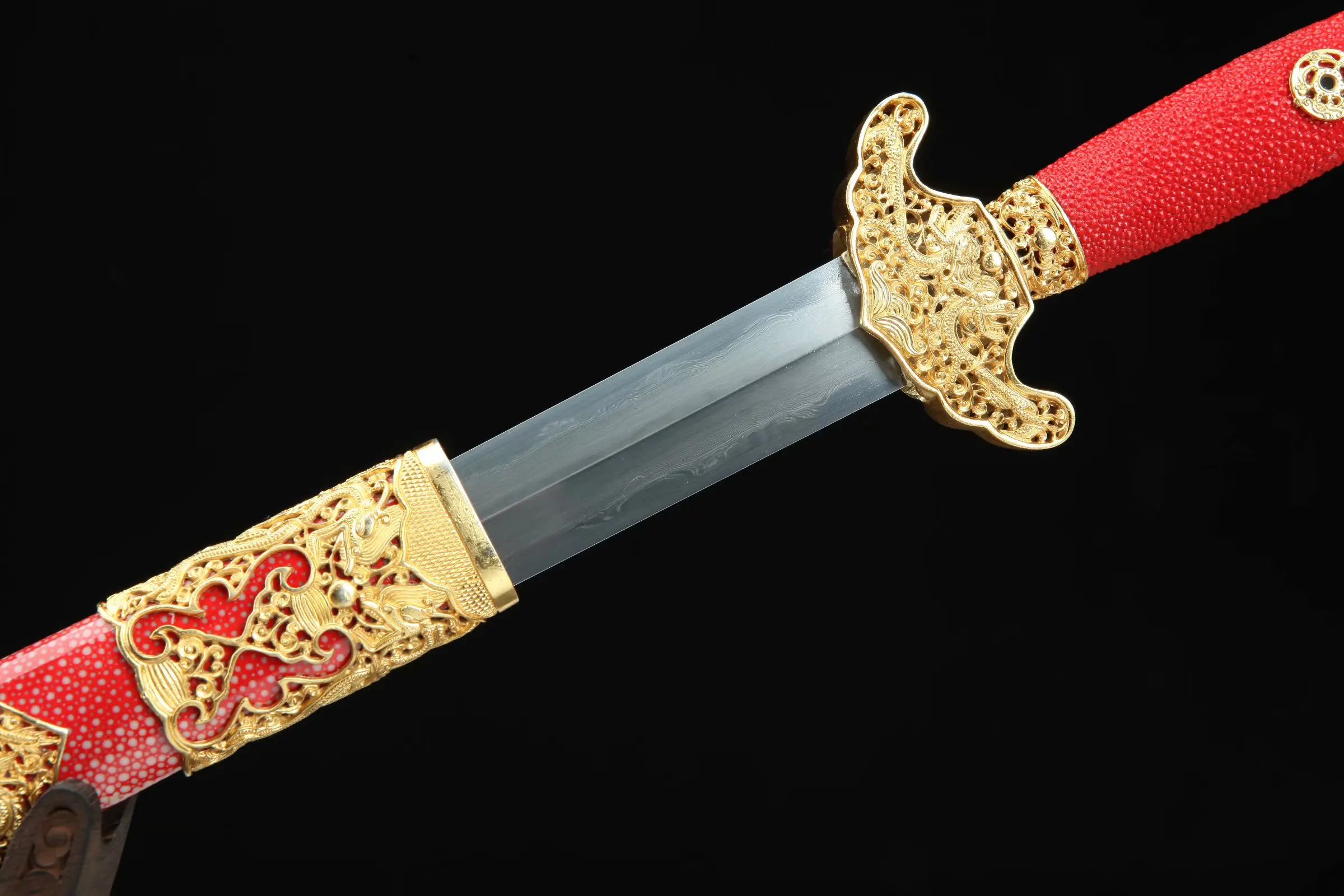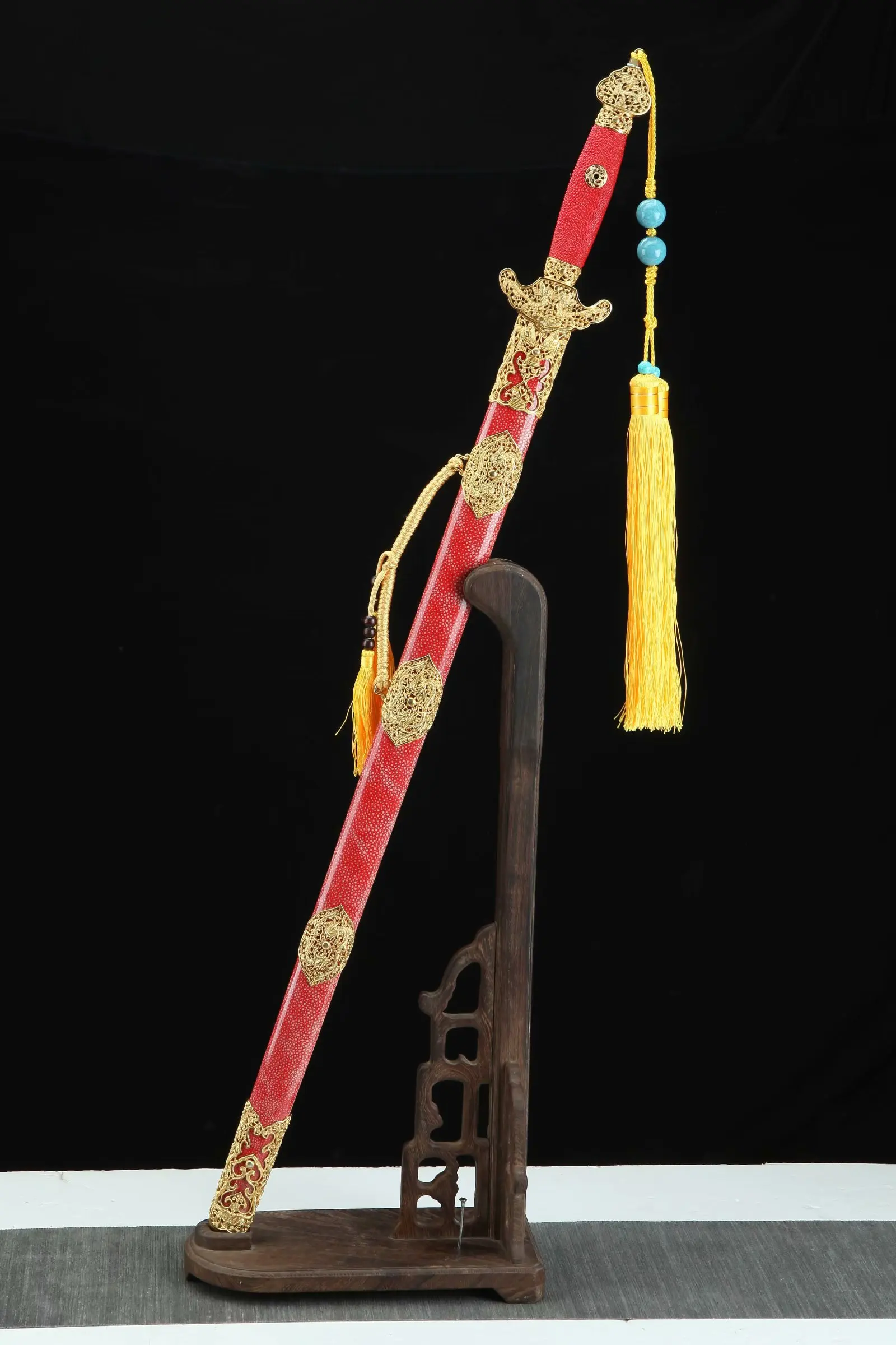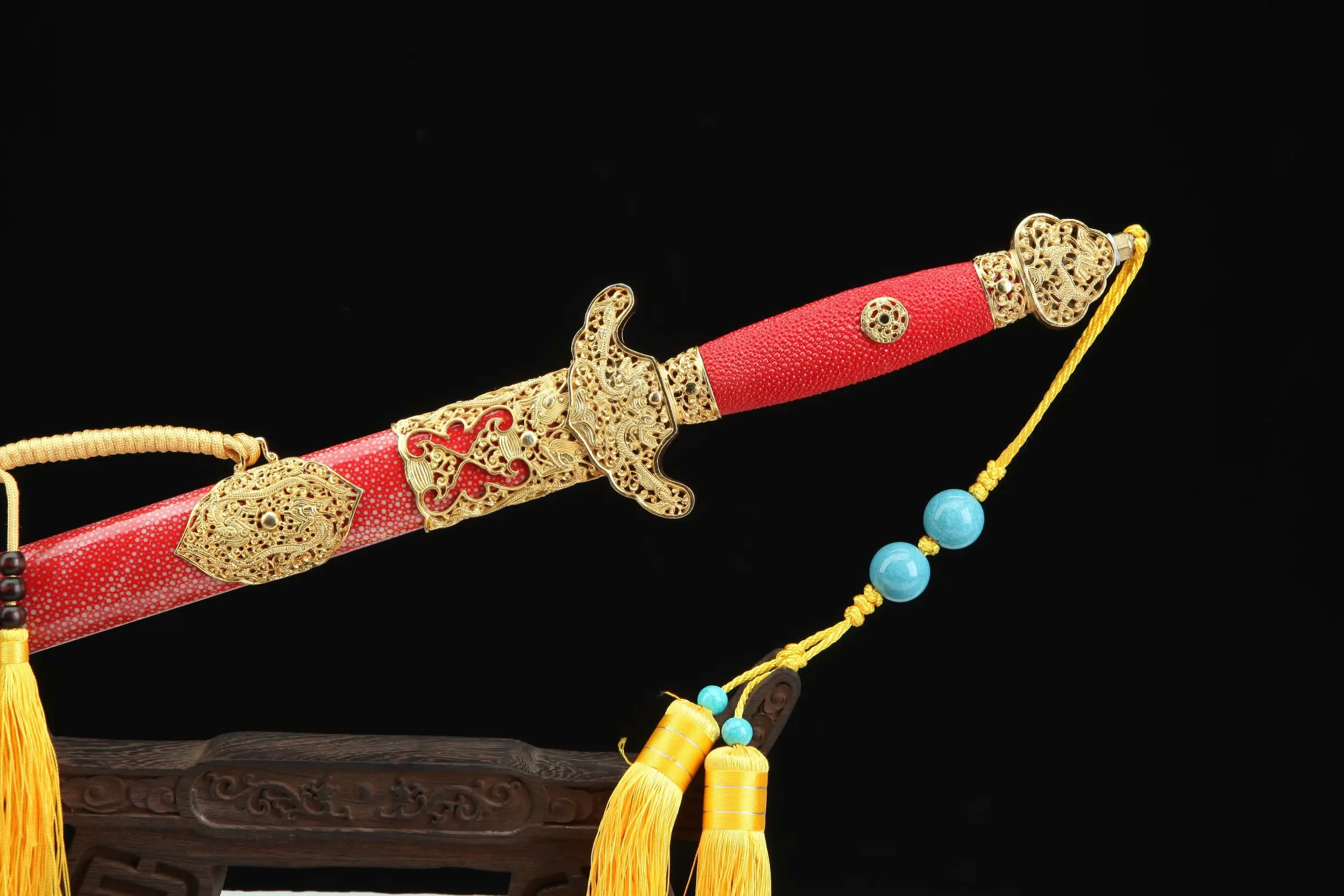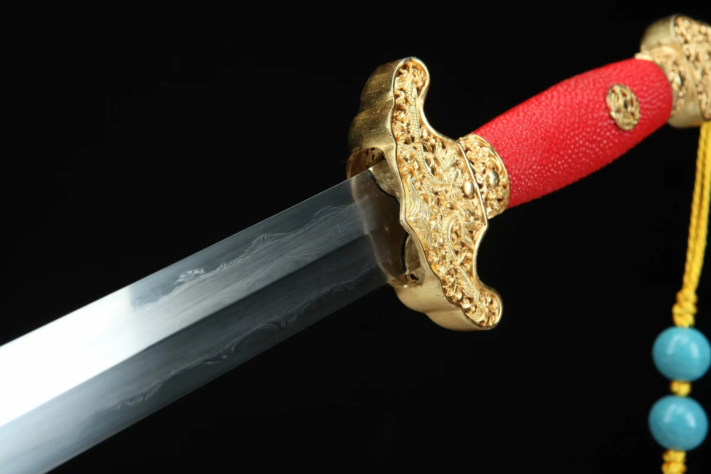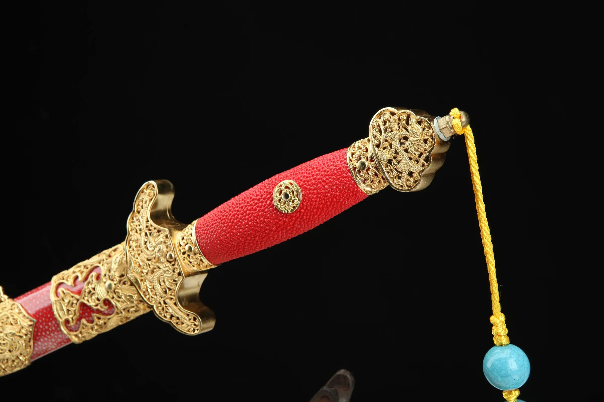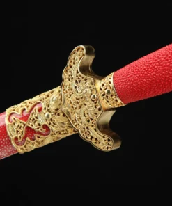 - Sword & scabbard fittings material: Hand-carved, pure-copper fittings, plated with genuine 24K gold.