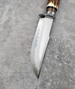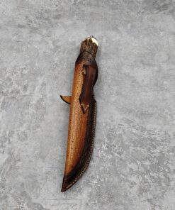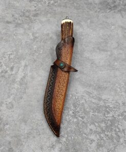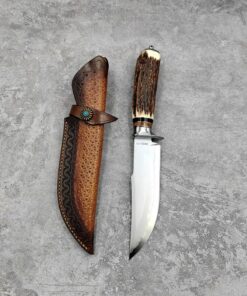 The construct is a premium imported SKD-11 steel, which is then forged into blade a with blade with excellent characteristics, including holding a lasting razor sharp cutting edge, blade and edge resilience and very good resistance to corrosion. A genuine deer antler is fitted to the tang, and the knife housed within a real cowhide leather sheath, which is hand carved and stitched.