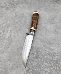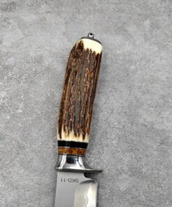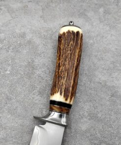 - Genuine deer antler handle + 440C stainless steel fittings.